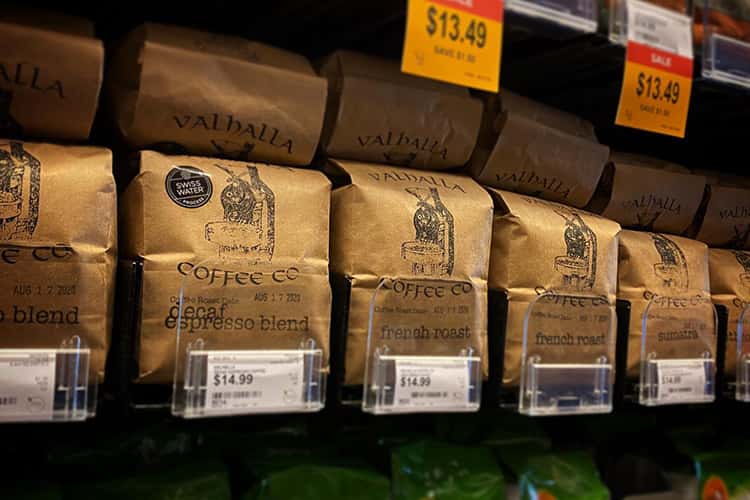 Appealing branded coffee packs on shelves