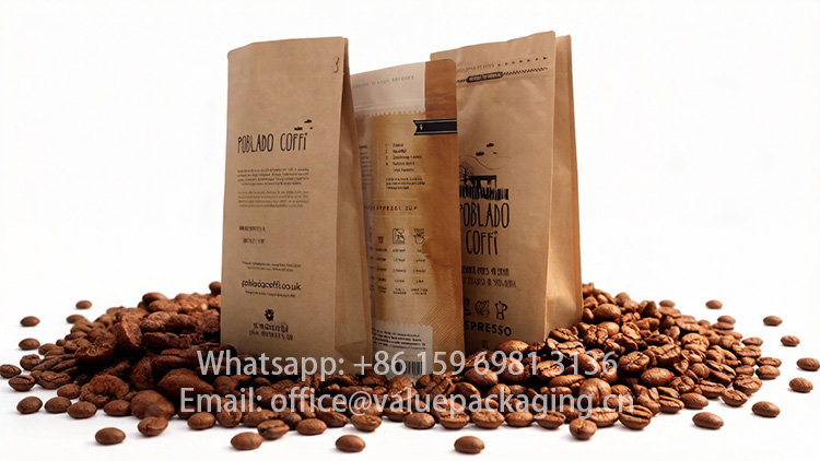 In retail environments, coffee packaging must stand out appealing to the consumers. Packages made of kraft paper is of great standup profile, and presents a natural, premium look, which always allow the consumers to associate with higher quality products, ethical and sustainable brands and transparent sourcing practices.